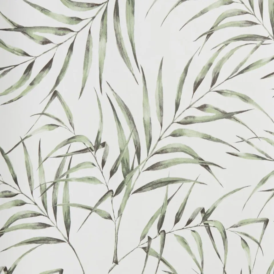 Vliesbehang met groene botanische print.