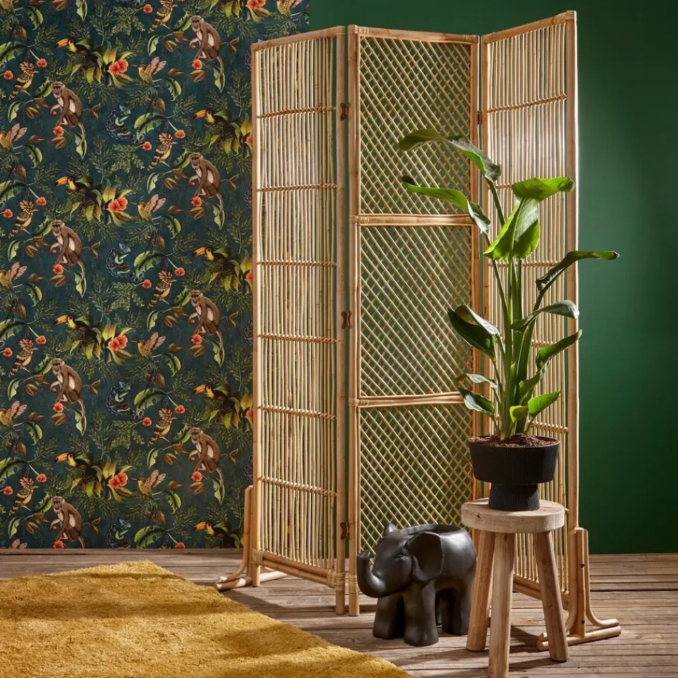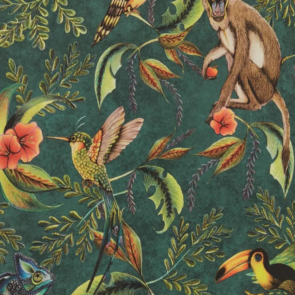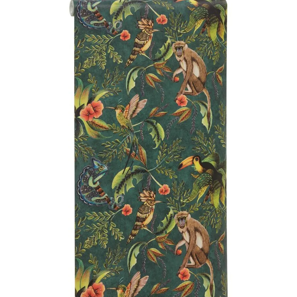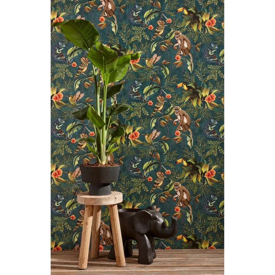 Vliesbehang met tropische print. Licht afwasbaar. Voorzien van het FSC keurmerk. 10 meter per rol.