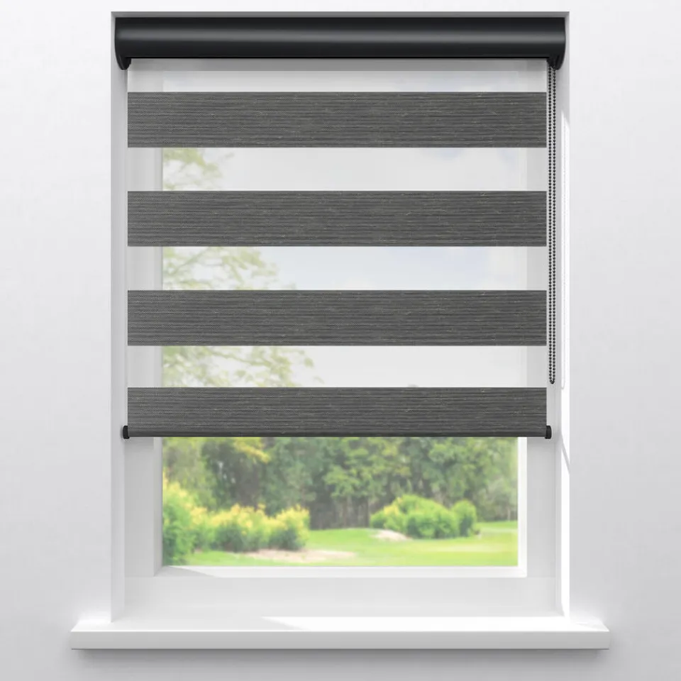 Duo rolgordijn Hidde is in een donker grijze kleur met lichte textuur in de polyester stof. In combinatie met een ketting-systeem, is zowel lichtinval als privacy makkelijk te regelen op elk moment van de dag. Onderhoud is ook geen probleem: gebruik een licht vochtige doek om het duo rolgordijn schoon te maken.