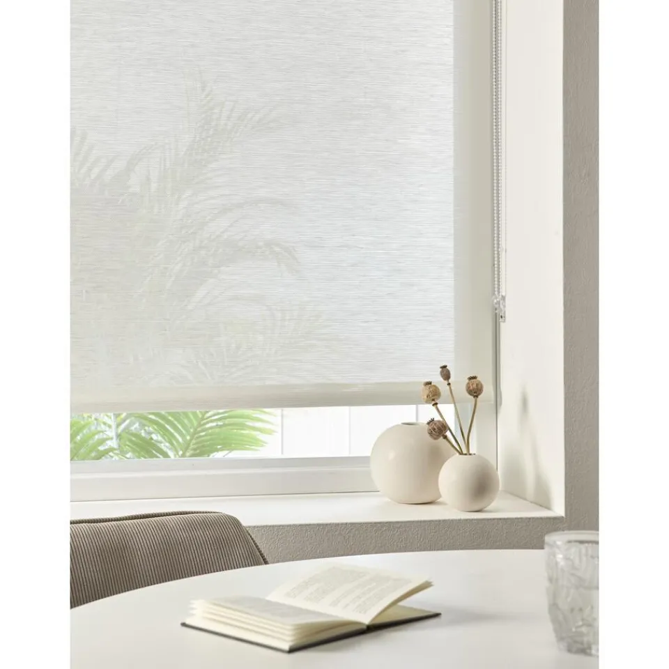 Transparant rolgordijn wit met grove weefstructuur. De stof laat veel licht door en filtert lichtinval op een natuurlijke manier. Zo behoud je de verbinding met buiten en creëer je veel sfeer.Op maat te maken en volledig naar wens samen te stellen met een ruime keuze uit accessoires en uitvoeringen. Elektrische bediening en zijgeleiding is mogelijk. Ook geschikt voor draaikiepramen. Eenvoudig af te nemen met een vochtige doek.
