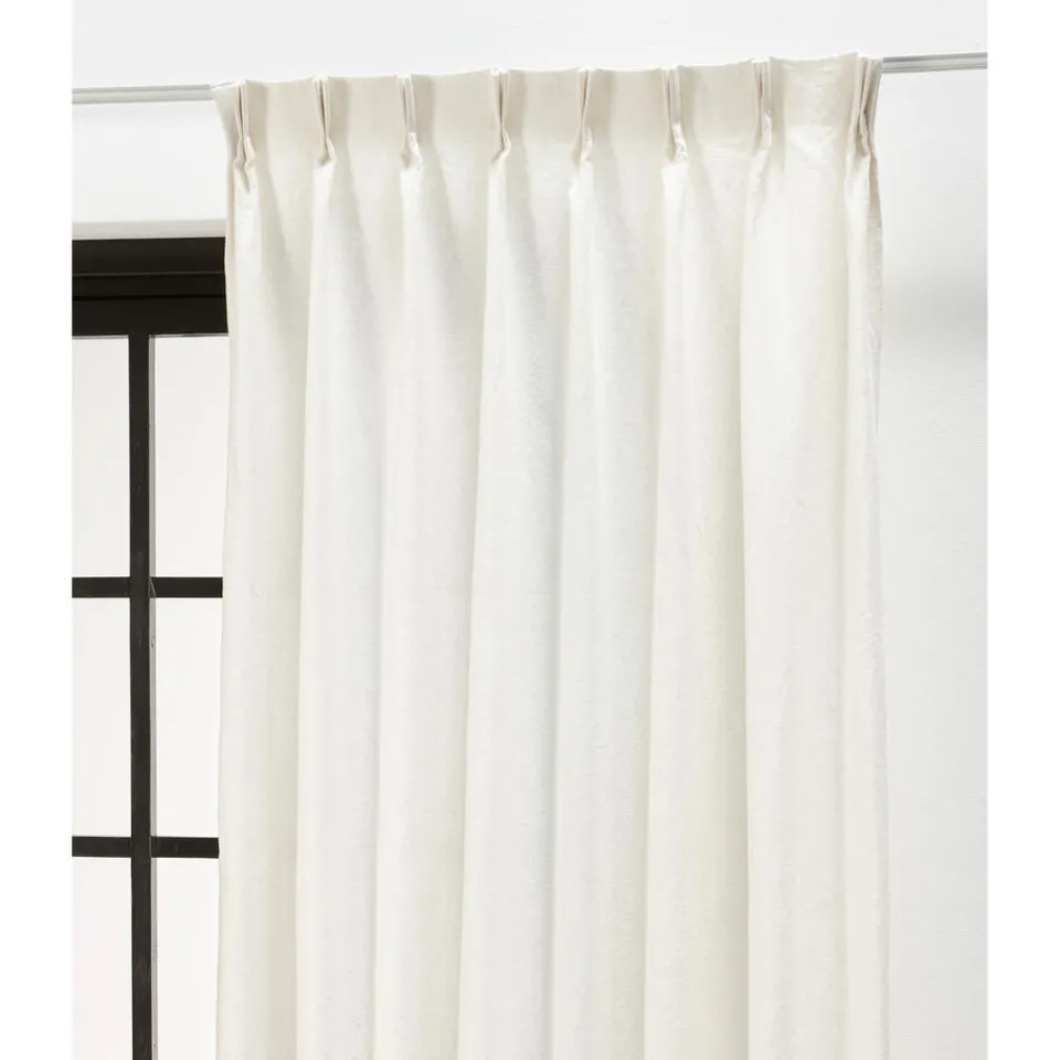 Gordijnstof van off-white linnen. Pluisvrij, luchtig en sterk. 140 cm breed.