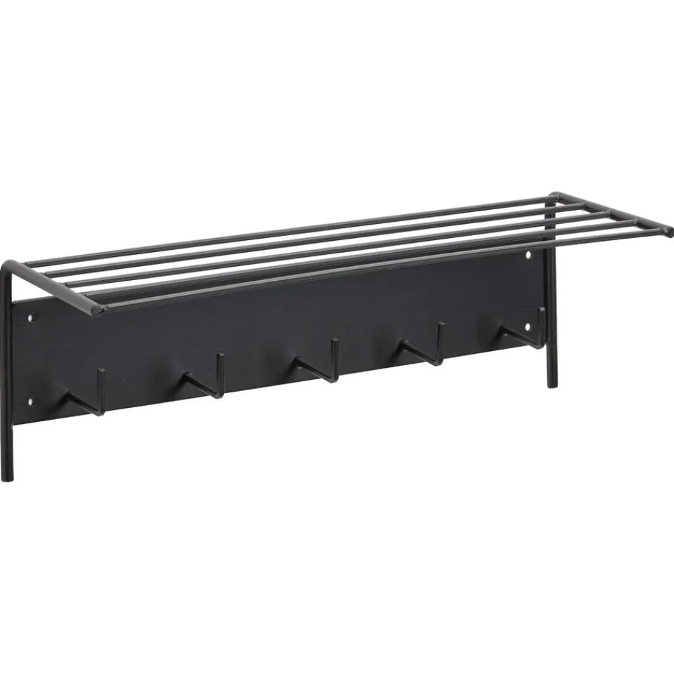 De Lemie kapstok in zwart metaal is perfect voor elke gang. Deze stijlvolle kapstok biedt vijf haken voor jassen en tassen, en heeft een handig boven rek voor accessoires. Creëer een georganiseerde en moderne uitstraling in uw huis met deze praktische en elegante oplossing. Ideaal voor elk interieur!