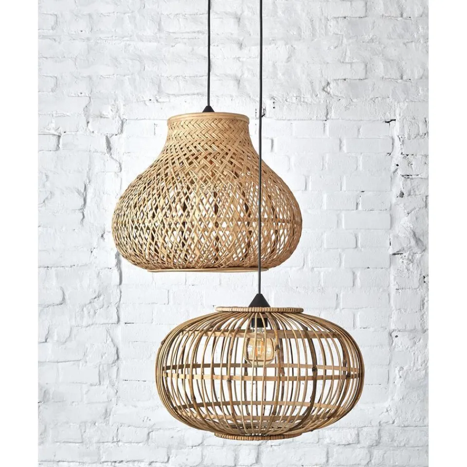 Natuurlijk lampenkap met opengewerkte structuur. Exclusief snoer. 28.5 cm hoog.
