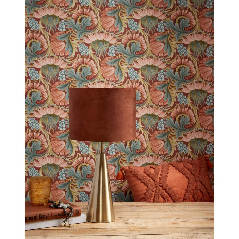 Lampenkap Cane in een terra kleur. Heeft een velours uitstraling. Gemaakt van 50% kunststof en 50% polyester. ø24×18 cm.