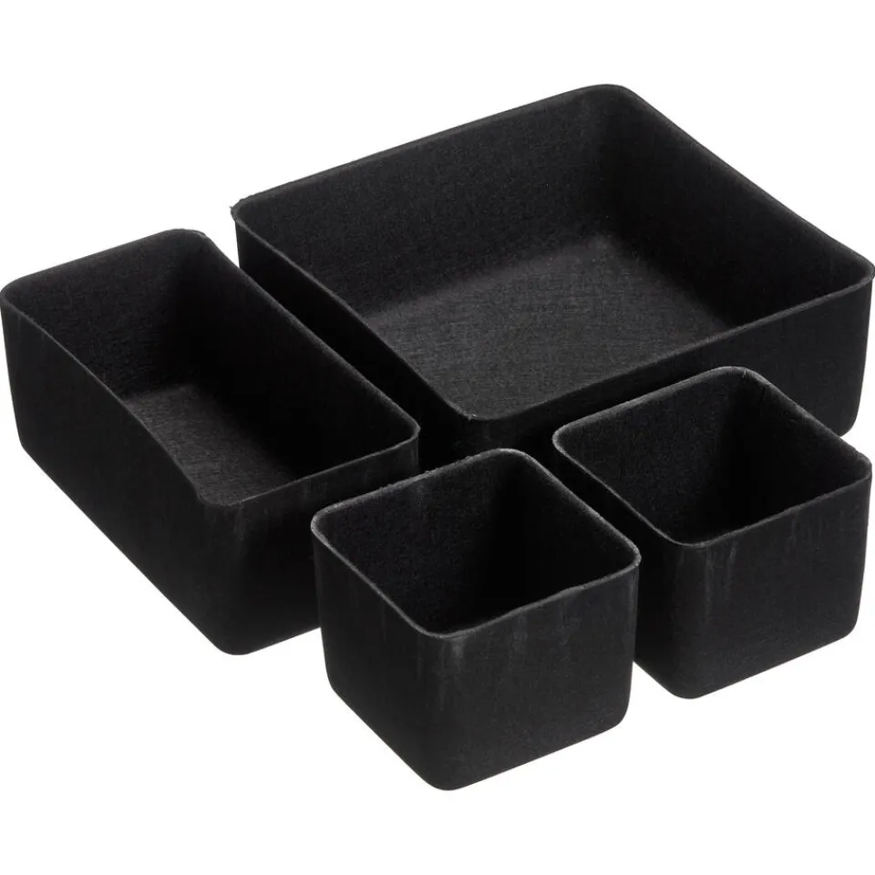 Deze opberger is gemaakt van vilt en is zowel functioneel als stijlvol.Met vier vakjes biedt deze zwarte opberger voldoende ruimte voor je spullen. De opberger heeft een totale afmeting van 25x25x10 cm (lxbxh).