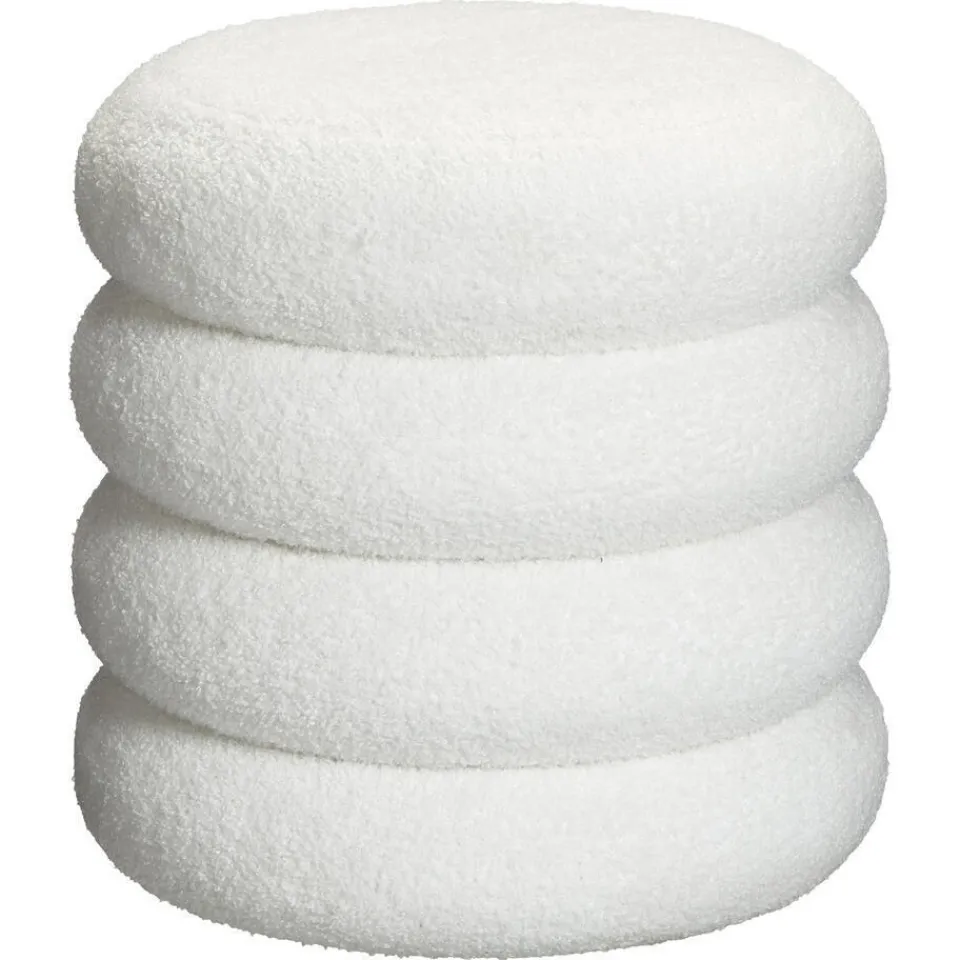 Moderne poef Prato boucle in de kleur wit. Gemaakt van 100% MDF + 100% polyester. 39,5x39cm.