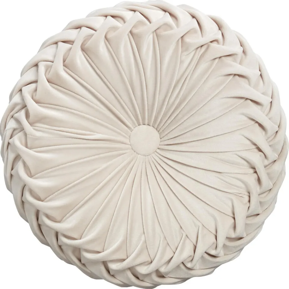 Populair Onore sierkussen in zand kleur. Het ronde kussen is gemaakt van 100% polyester en heeft een diameter van 38 cm.