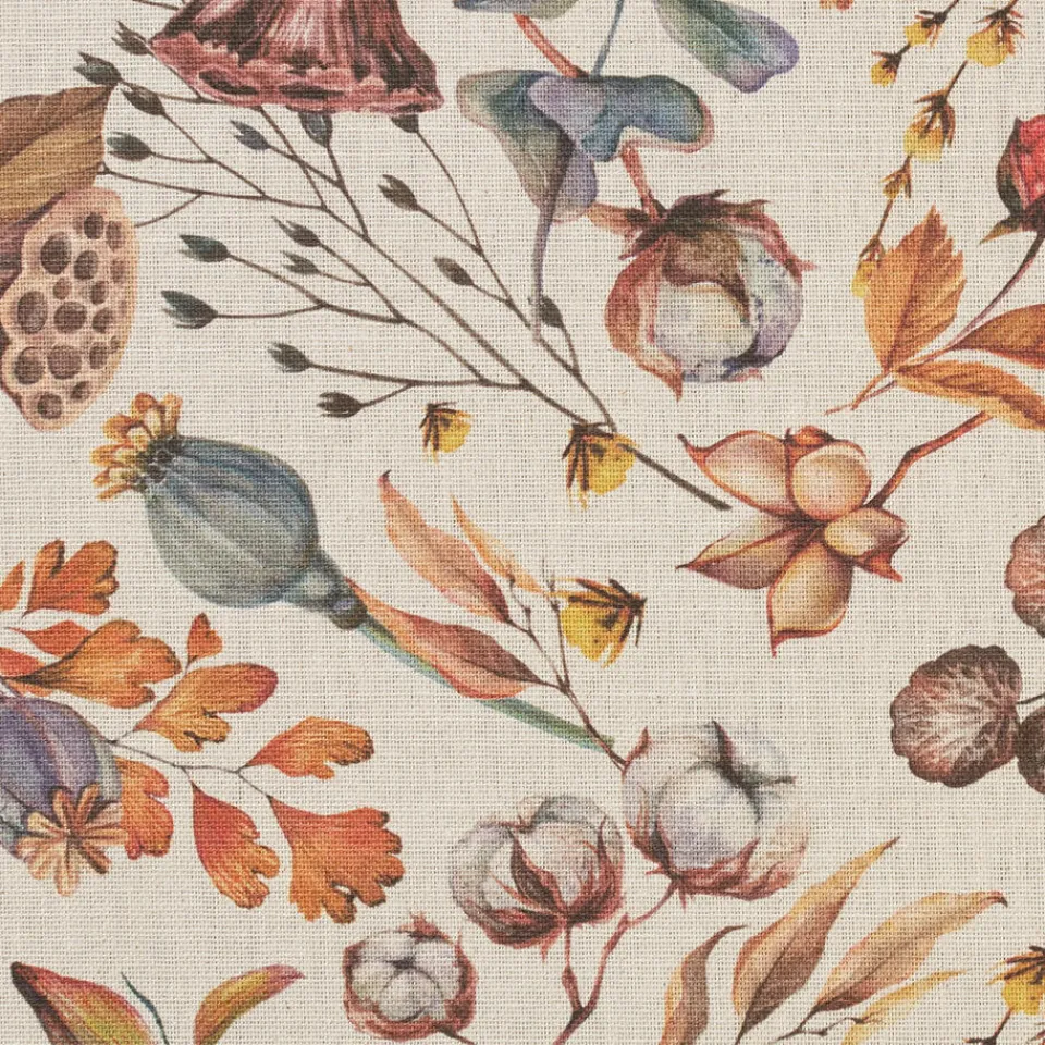 Stof Marian in een off-white kleur. Deze stof heeft een bloemenpatroon en is gemaakt van 88% katoen en 12% polyester. De patroonhoogte is 40 centimeter.
