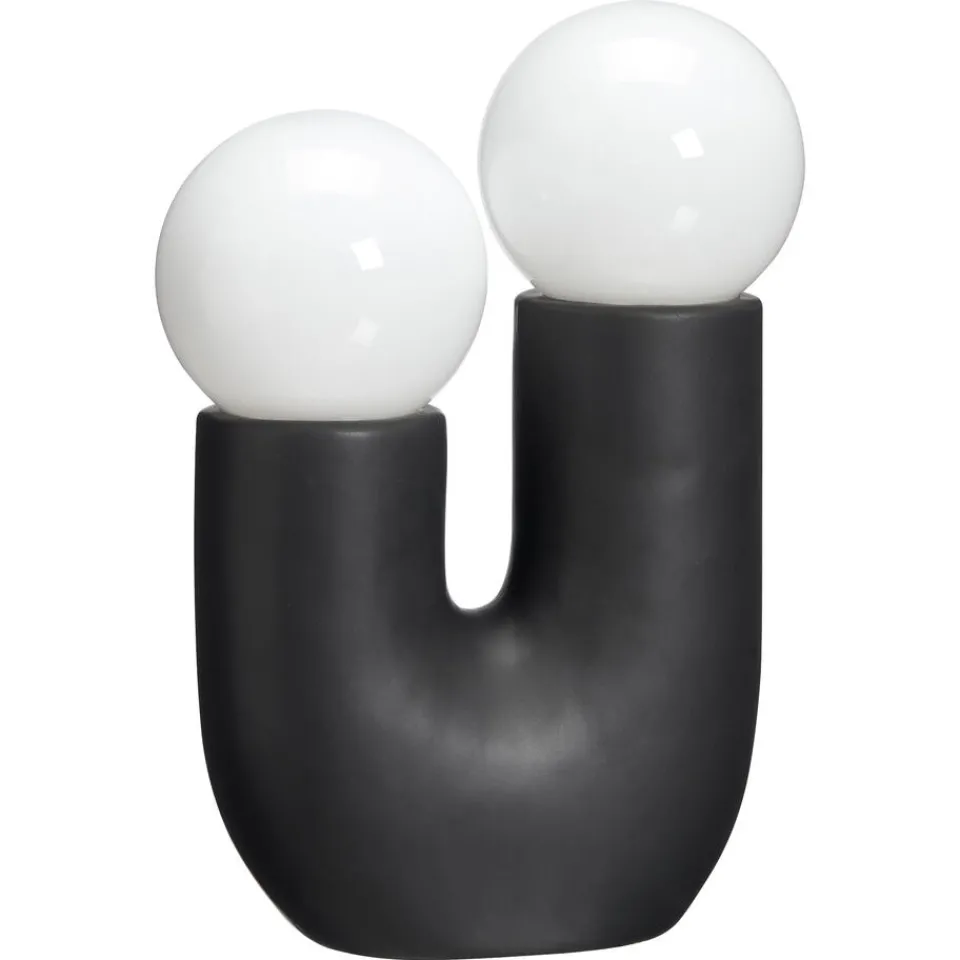 Tafellamp Oberon in zwarte kleur is een unieke en charmante tafellamp. Door het gebruik van keramiekheeft hij een natuurlijke uitstraling en behoudt hij lang zijn kwaliteit. De lamp heeft 2 geïntegreerde LED lampen die werken op 2x AA batterijen (niet meegeleverd). De lamp geeft warm wit licht wat een gezellige sfeer creëert.