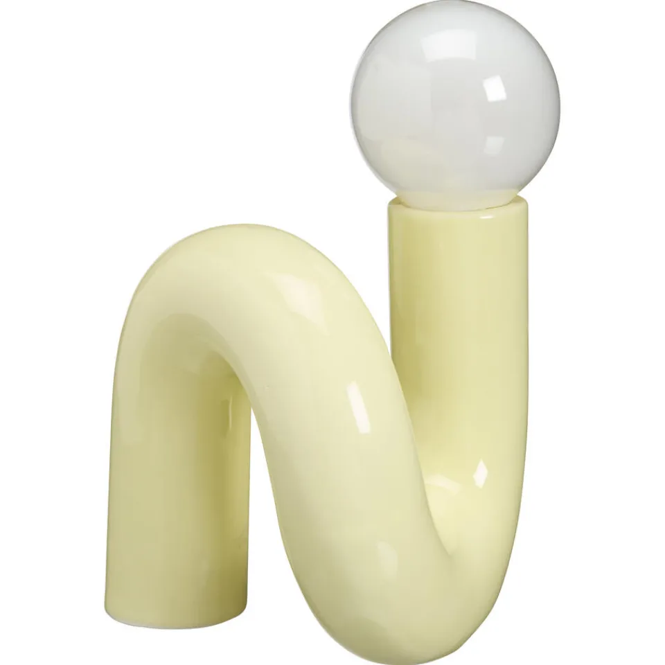 Tafellamp Sokar in gele kleur is een vrolijk lampje die je ruimte aankleedt en een mooi decoratiestuk is in in je interieur. Hij is gemaakt van keramiek en glas en heeft een organische vorm. De lamp heeft een geïntegreerde LED lamp die werkt op 2x AAA batterijen (niet meegeleverd).