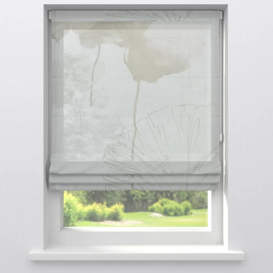 Vitrage Aukje in een witte kleur. Deze stof heeft een hele subtiele print van grijze bloemen. Gemaakt van 100% polyester. Patroonhoogte is 64 centimeter.