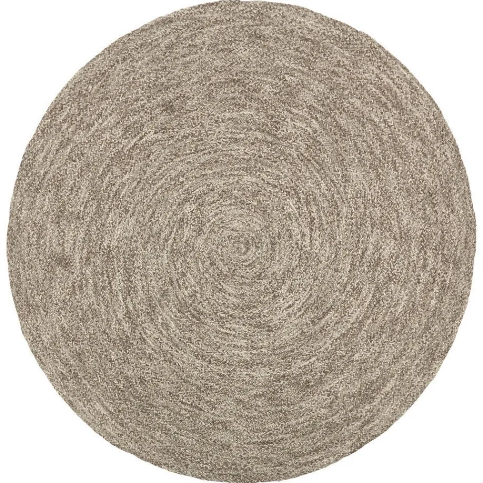 Rond handgeweven vloerkleed van wol met grijstinten. Veerkrachtig, geluiddempend en makkelijk in onderhoud. Voorzien van het Care & Fair keurmerk. 180 cm doorsnede.