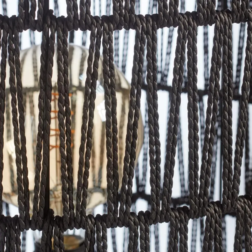 Helemaal volgens de natuurlijke trend: deze unieke vloerlamp heeft een kap van gespannen touw. Hiermee zorgt de lamp voor een sfeervol lichtspel op de muur.
