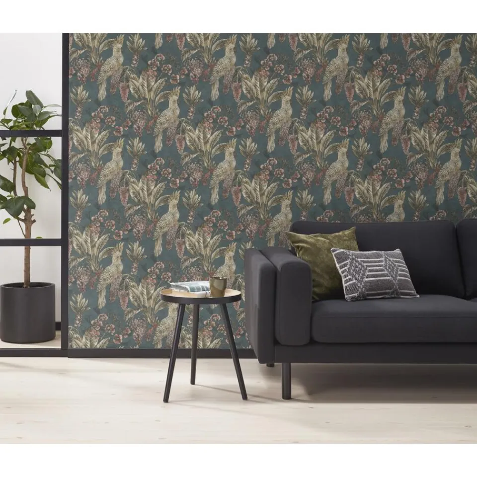 Behang Frank in de kleur blauw. Gemaakt van 100% cellulose. 53cm breed en 53cm patroonhoogte.