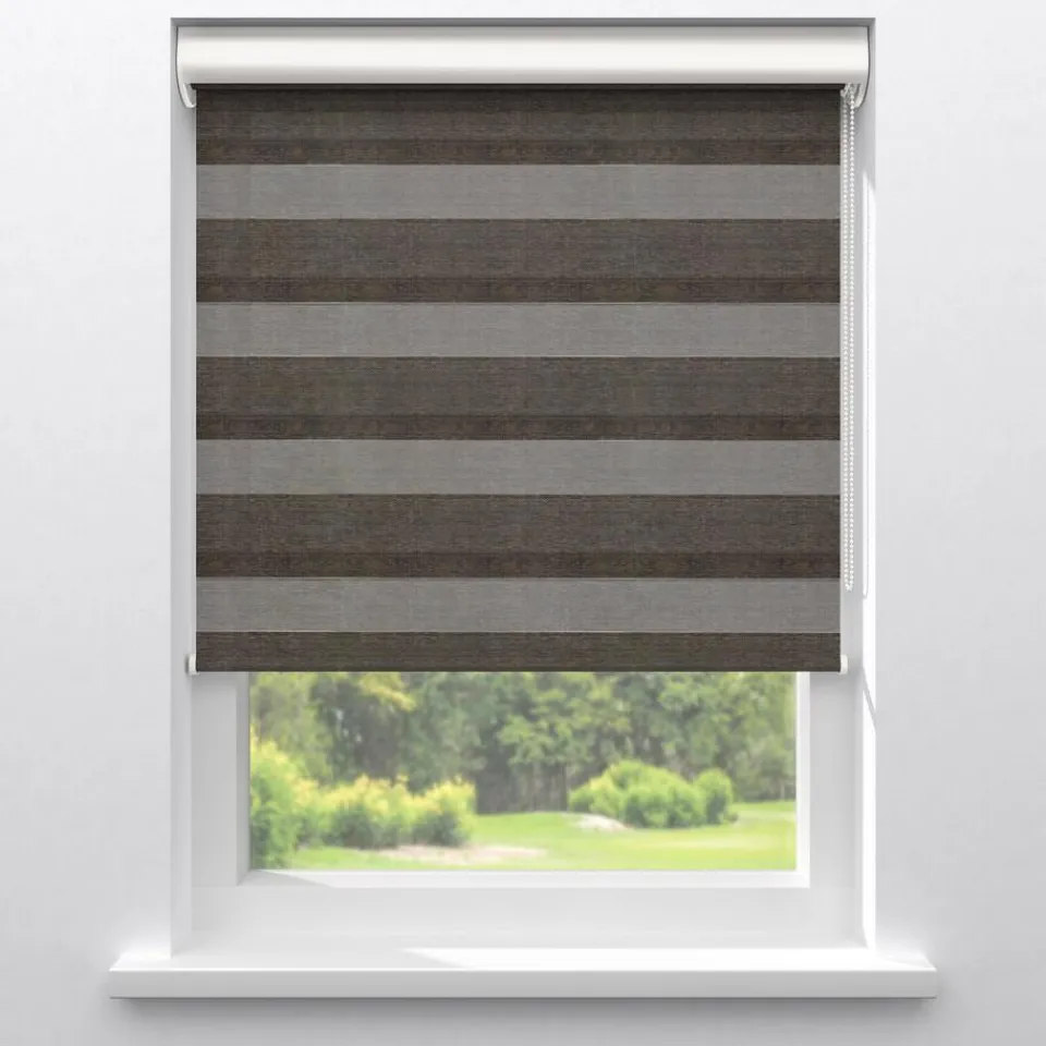 Lichtdoorlatend duo-rolgordijn bruin. De transparante banen hebben een fijne gaasstructuur. De afwisselende open en dichte stofbanen bewegen voor elkaar langs. Zo bepaal je eenvoudig de lichtinval en privacy. Je kunt zelf de kleur kiezen van de cassettes, eindkappen, kettingen, onderlatten en roedes. De bedieningszijde kies je ook zelf: rechts of links. Op maat te maken en eenvoudig met de juiste afmetingen te bestellen.