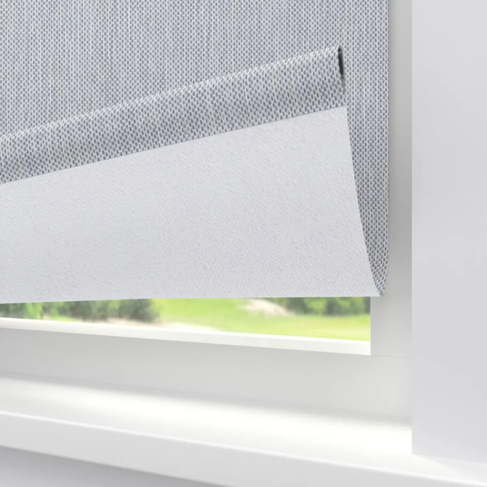 Verduisterend rolgordijn lichtgrijs gemêleerd met verticale garens. De witte achterzijde zorgt voor volledige verduistering. Ideaal voor slaapkamers maar ook te gebruiken voor keukens en andere woonruimtes. Op maat te maken en volledig naar wens samen te stellen met een ruime keuze uit accessoires en uitvoeringen. Elektrische bediening en zijgeleiding is mogelijk. Ook geschikt voor draaikiepramen. Eenvoudig met een vochtige doek af te nemen.