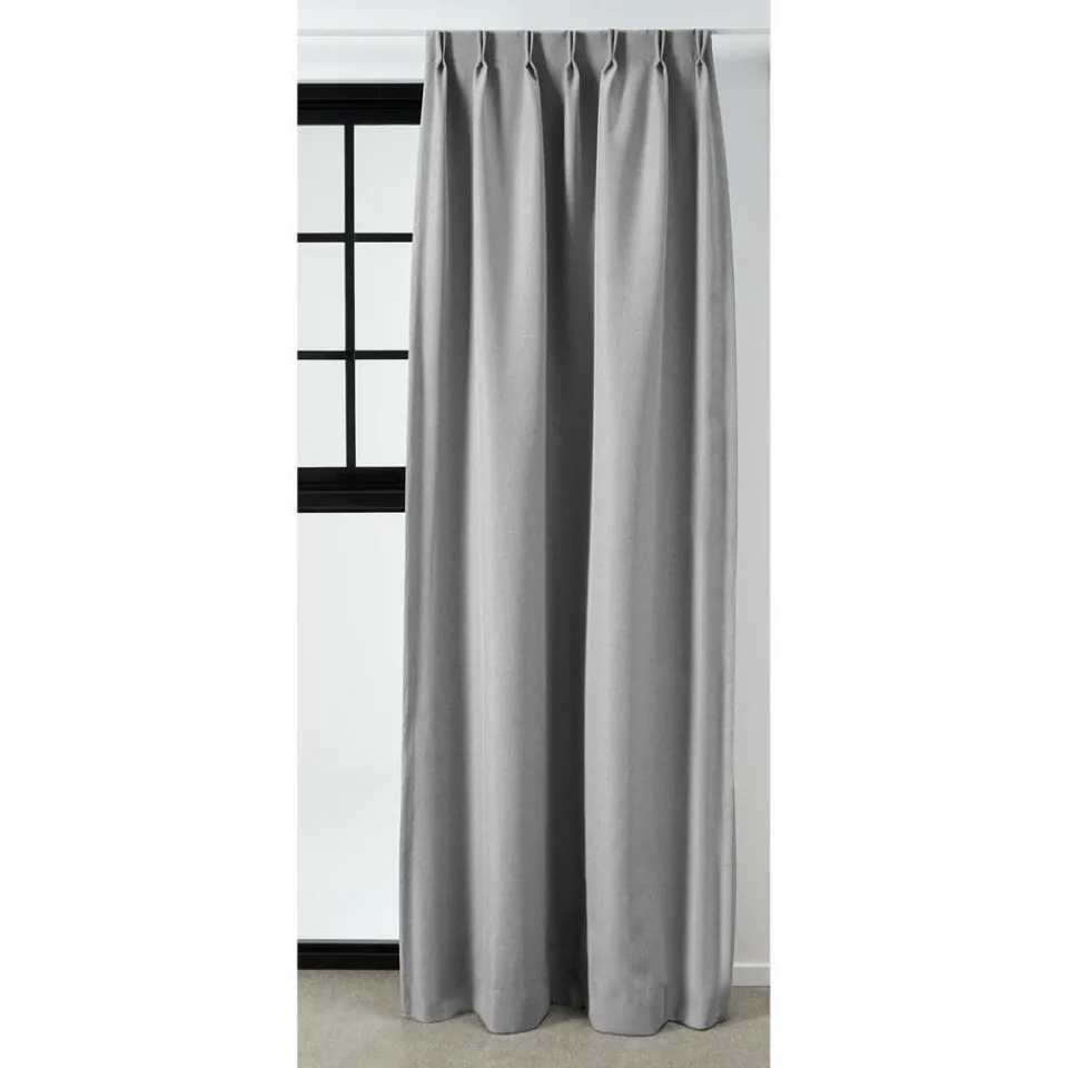 Verduisterende gordijnstof grijs met structuur. Soepelvallend, stevig en kreukherstellend. 150 cm breed.