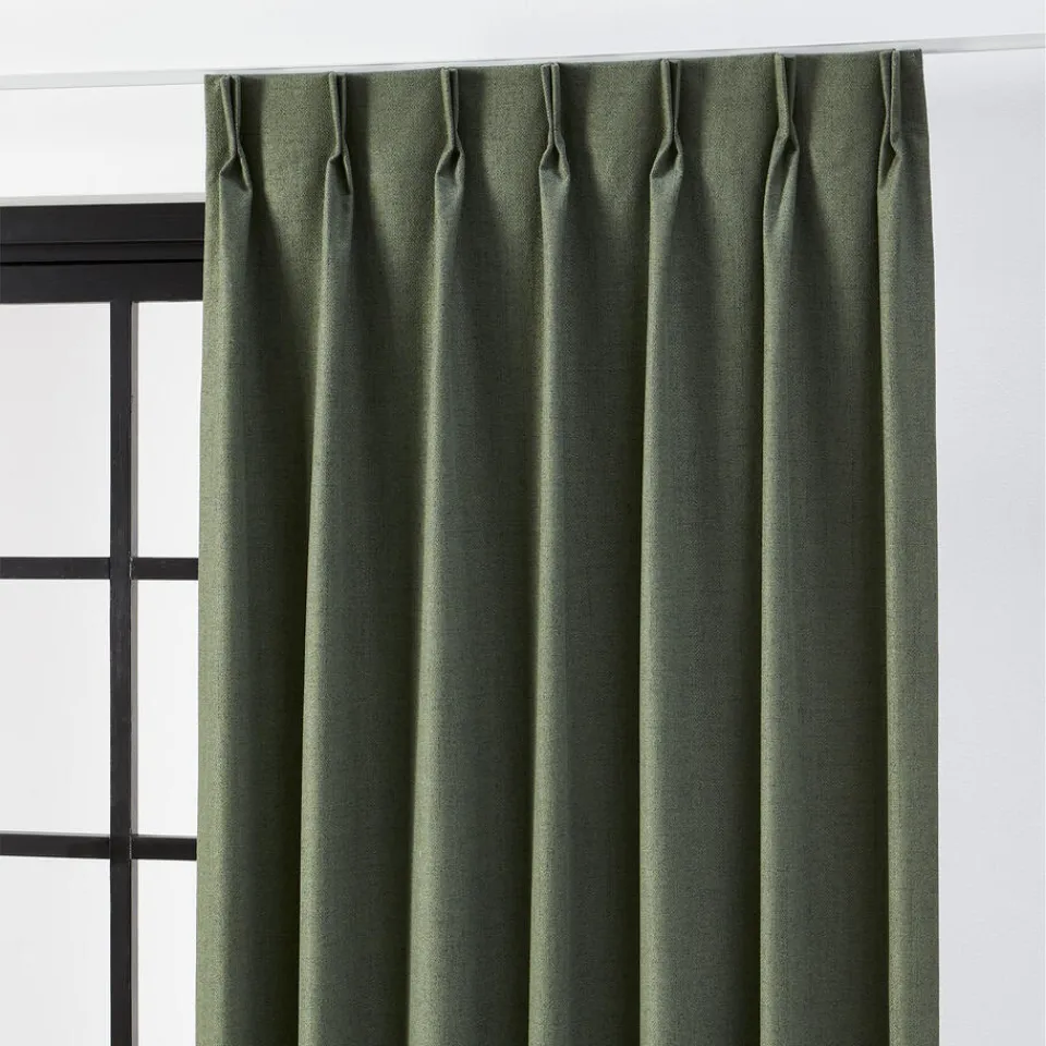 Verduisterende gordijnstof Doris in de kleur donkergroen met een elegante uitstraling. Stevig, vormvast en slijtvast. Dit black-out gordijn is aan de achterkant voorzien van een coating die ervoor zorgt dat dit gordijn 100% verduisterend is. Deze coating zorgt dat er geen licht door de stof komt. Daarom is de achterkant meestal wit en de voorkant is de gewone gordijnstof. Een black-out gordijn voelt wat stugger aan. Deze gordijnstof houdt, in tegenstelling tot dim-outs 100% het zonlicht tegen. Bij de confectie van deze kwaliteit kunnen kleine gaatjes ontstaan. Dit is inherent aan de stof en kan niet voorkomen worden. 144 cm breed.