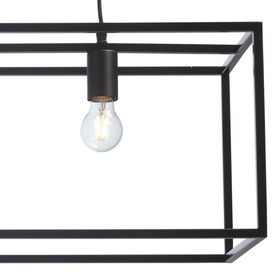 Hanglamp met rechthoekig zwart metalen frame. 100x29x130 cm (lxbxh).
