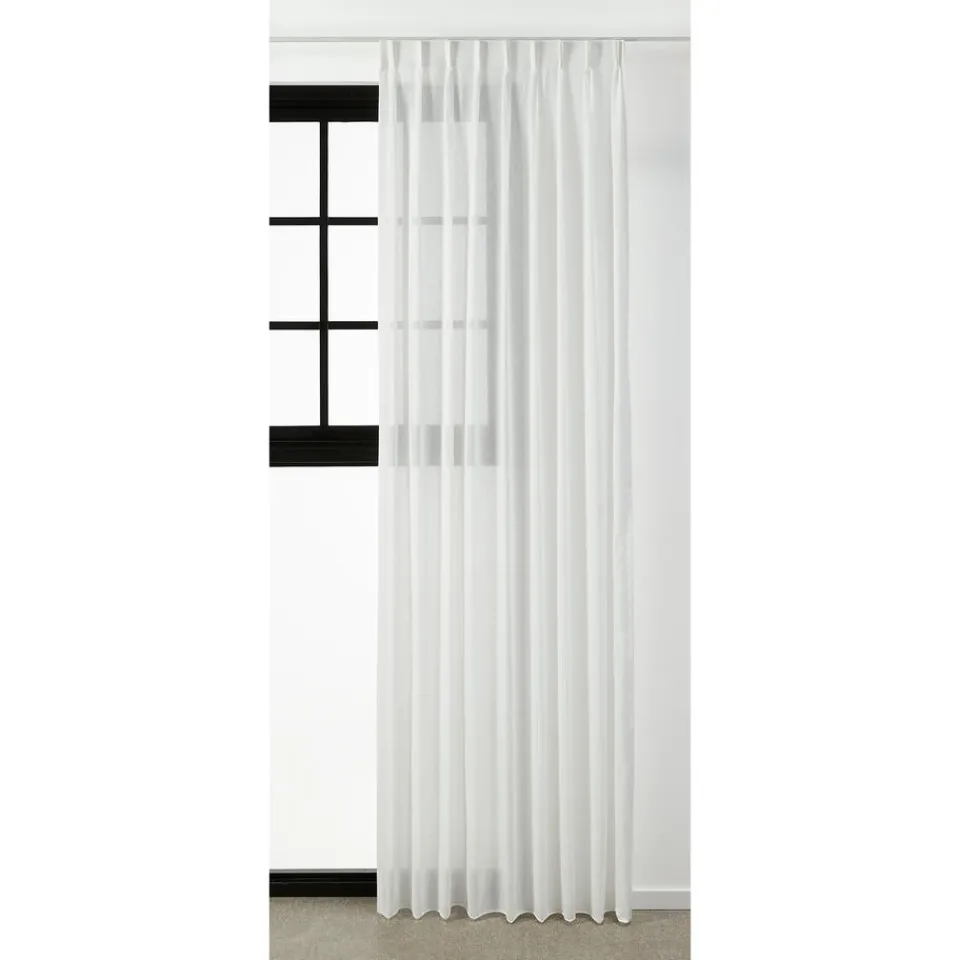 Inbetween Dennis in de kleur wit. De stof is gemaakt van 85% polyester en 15% linnen. De hoogte van de stof is 300 centimeter.