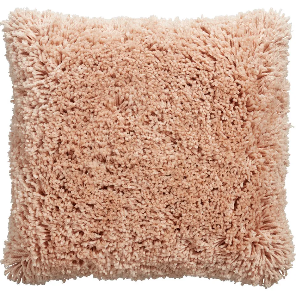 Sierkussen Bazas heeft een zachtroze kleur en een sfeervol en modern bouclé patroon.Het vierkanten kussen heeft een afmeting van 45×45 cm.