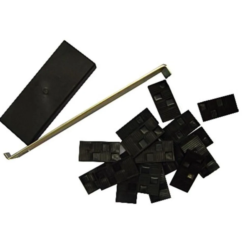 Laminaat legset 3-delig. Hielijzer, aanslagblok en 20 afstandspietjes voor het leggen van laminaat/parket.