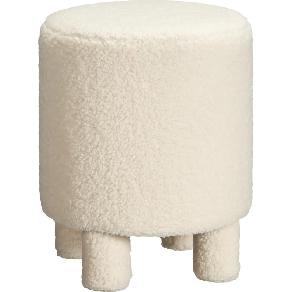 Moderne poef Pontey heeft een heerlijke, zachte, off-white teddy bekleding en is een leuke toevoeging aan jouw interieur of een vrolijke kinderkamer. Het poefje heeft een afmeting van Ø38×45 centimeter en heeft een maximaal draagvermogen van 110 kg. Ook verkrijgbaar in roze.