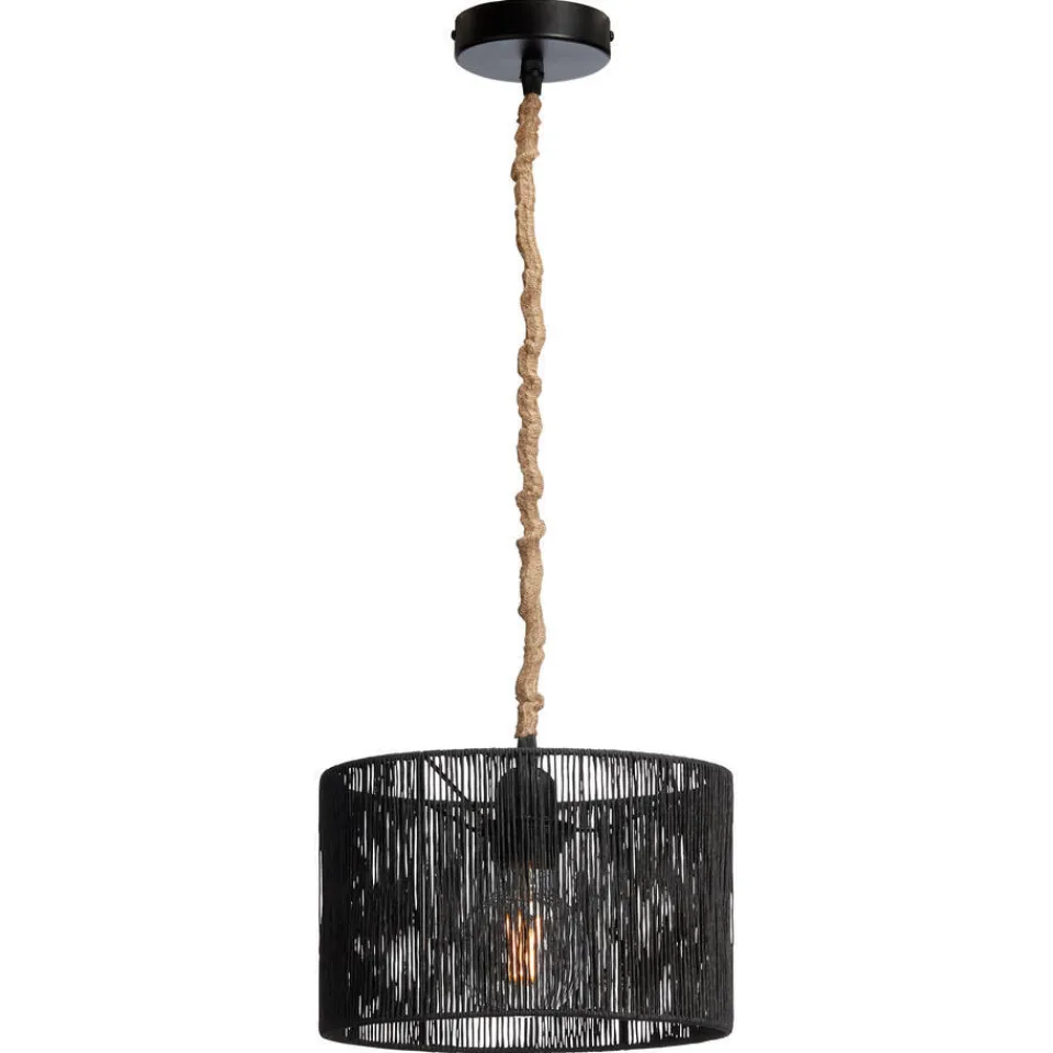 Snoerpendel gemaakt van touw met zwarte accessoires. Lichtbron niet inbegrepen. Lengte van het snoer is 100 centimeter.