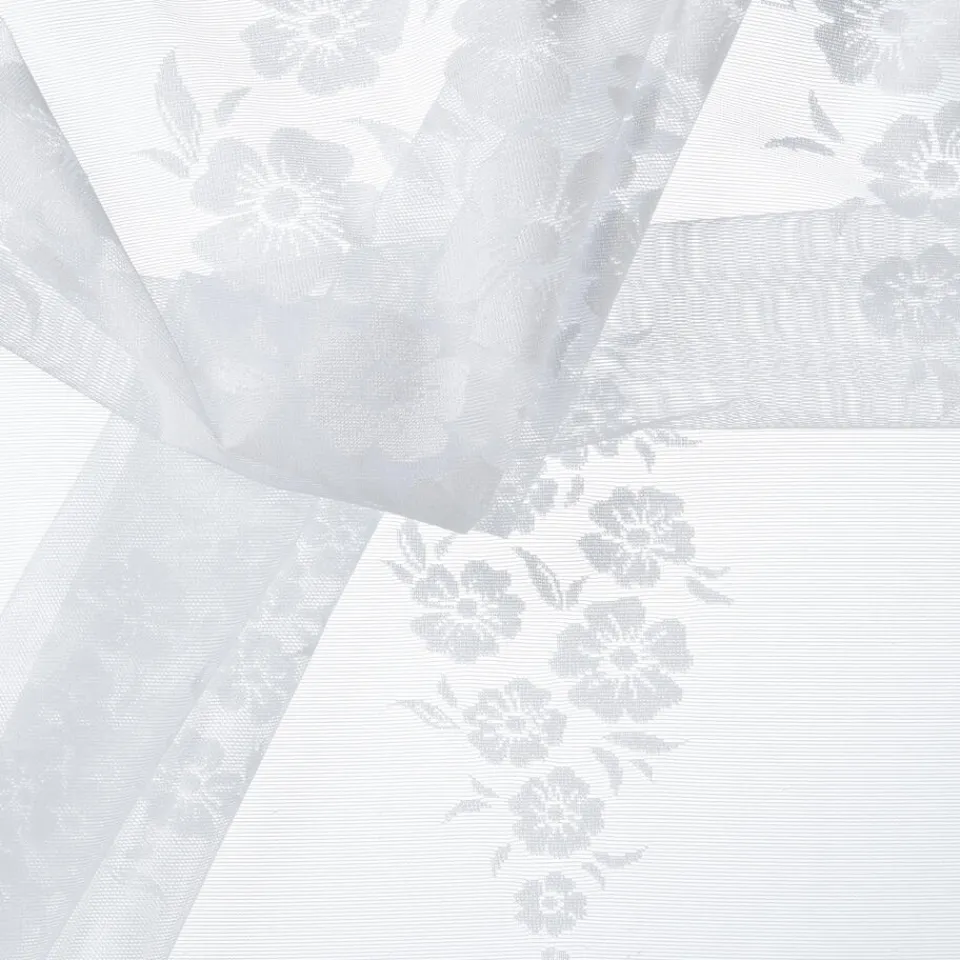 Stof Rowen Wit is een licht doorlatende stof met een geborduurd bloemen patroon. De stof is gemaakt van 100% Polyester. Polyester is een synthetische vezel met veel praktische als duurzame eigenschappen. De stof is dan ook behoorlijk slijtvast en krimpt, kreukt of vervormt niet snel. Deze stof is per meter verkrijgbaar en geschikt voor het maken van gordijnen, kleding, kussens, dekbedovertrekken en nog veel meer.