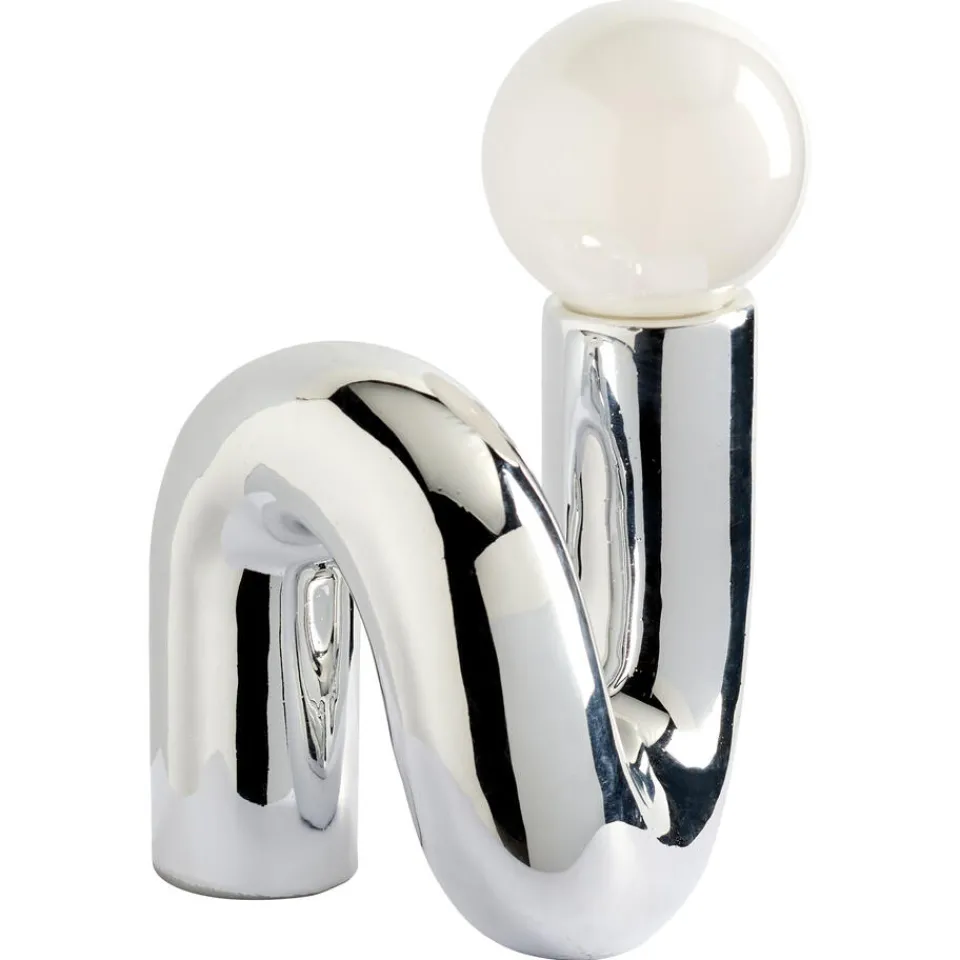 Tafellamp Sokar in chroom uitvoering is een vrolijk lampje die je ruimte aankleedt en een mooi decoratiestuk is in in je interieur. Hij is gemaakt van keramiek en glas en heeft een organische vorm. De lamp heeft een geïntegreerde LED lamp die werkt op 2x AAA batterijen (niet meegeleverd).