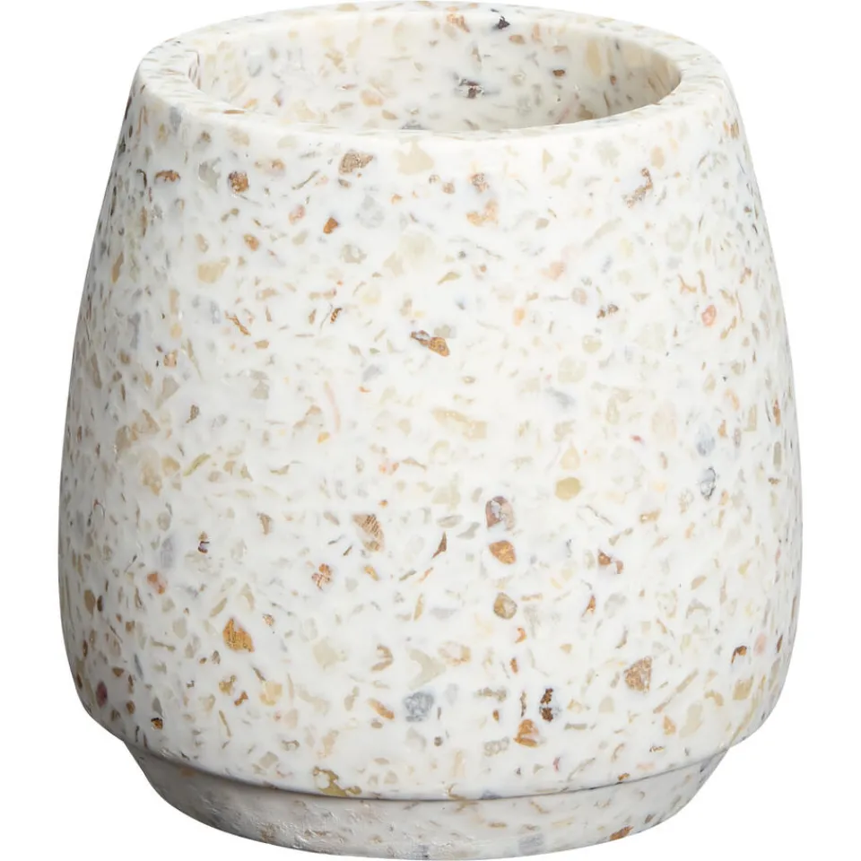 De sfeervolle tandenborstelhouder Terazzo heeft een elegante off-white kleur.Deze stijlvolle beker, gemaakt van 100% hars (polyresin), voegtklasse toe aan jouw badkamer.Perfect voor dagelijks gebruik en een prachtige decoratieve aanvulling.Kies voor de deze tandenborstelhouder en geniet van zowel functionaliteit als esthetiek in jouw interieur.