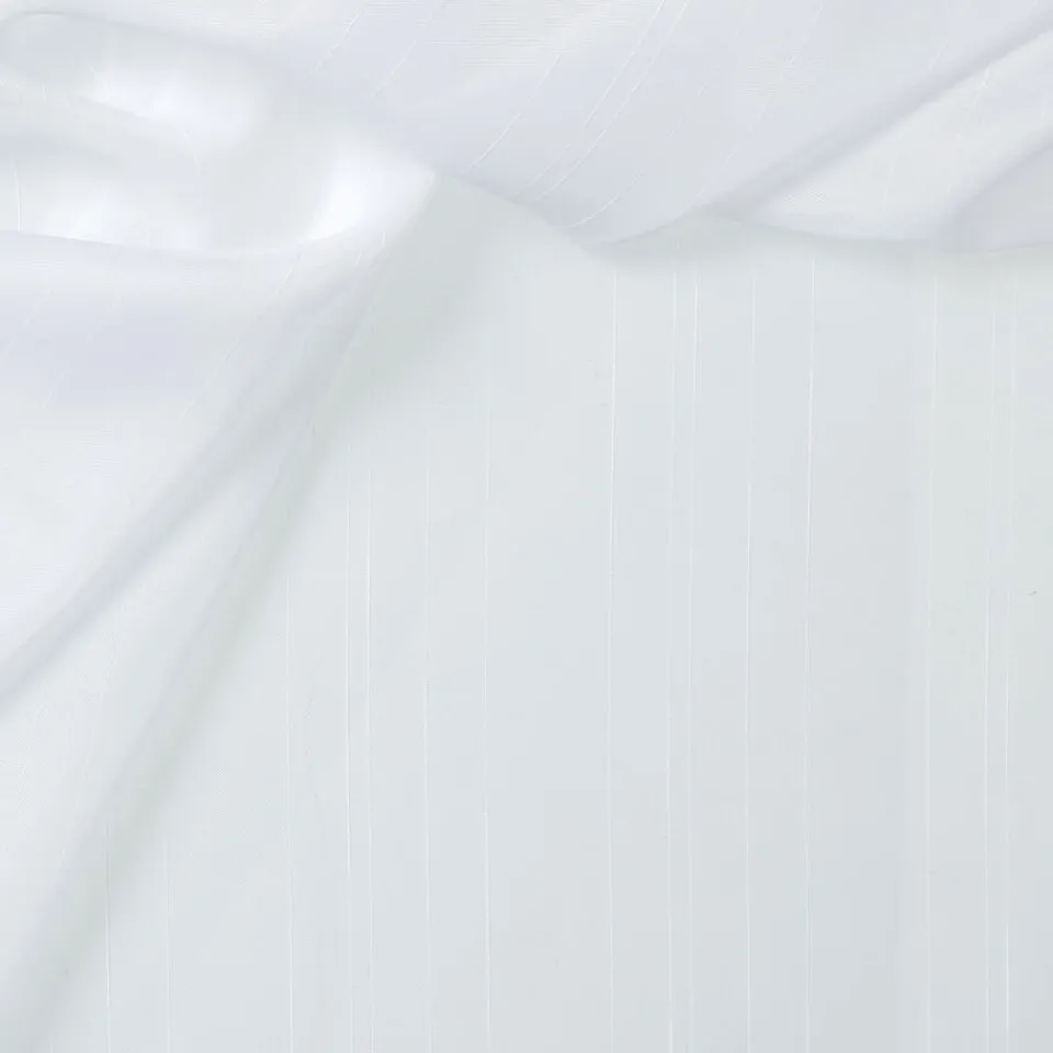 Vitrage Vera in een witte kleur. Deze stof is gemaakt van 95% gerecycled polyester en 5% polyester. De stof heeft een heel licht gestreept patroon. Stofhoogte is 300 centimeter.